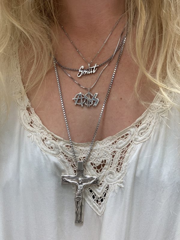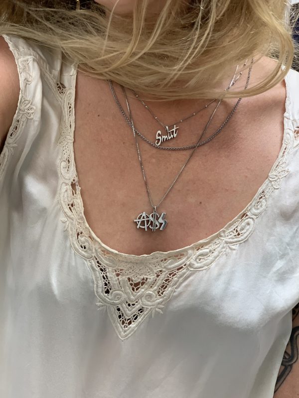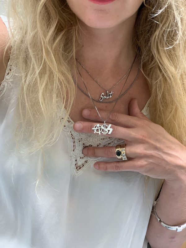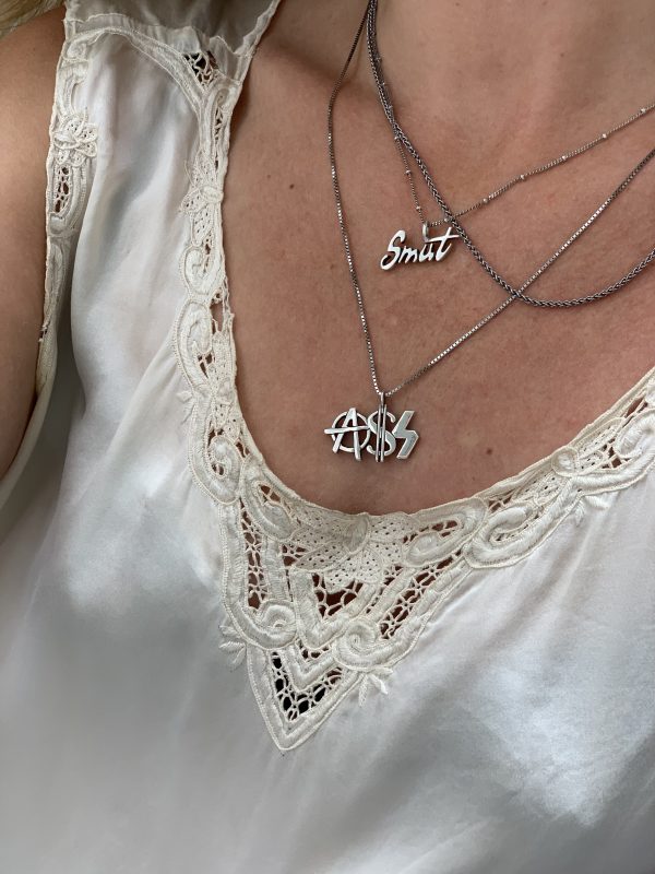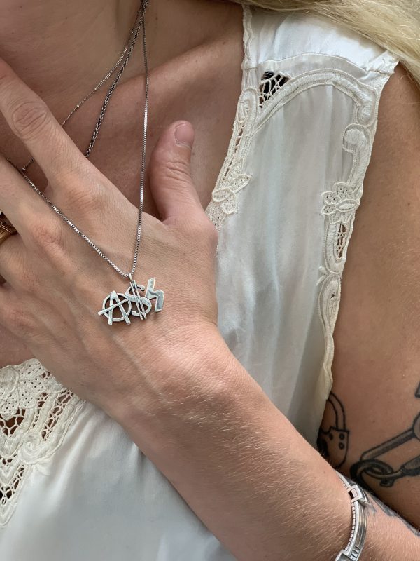 Cheeky charm. An anarchy “A” $ “S” and Black Sabbath “S” spells out ASS. Handcrafted in sterling silver, with Italian sterling silver chain.