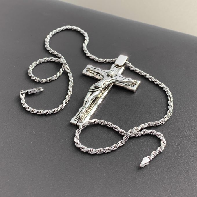 Crucifix pendant. Handcrafted in sterling silver, made to order.